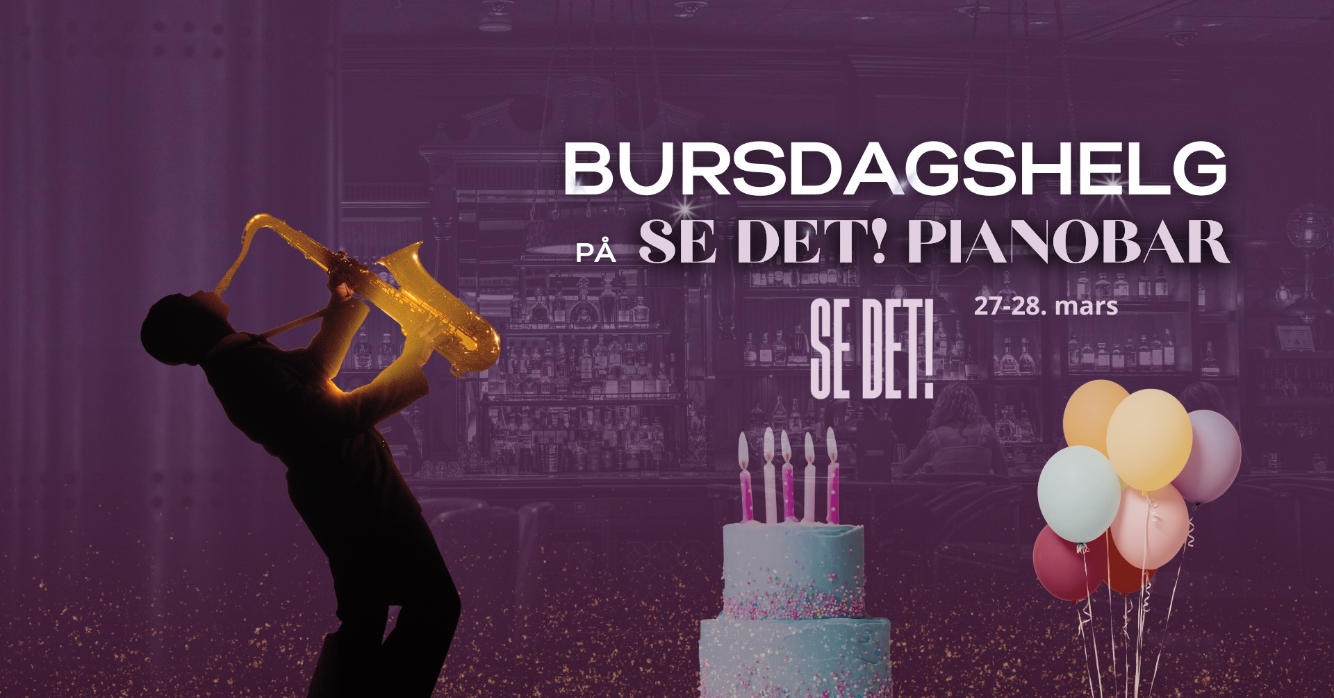 Fredag og lørdag i Palmehelgen er det full bursdagsfeiring på Se Det! med pianist, konkurranser, bobler, premier +++